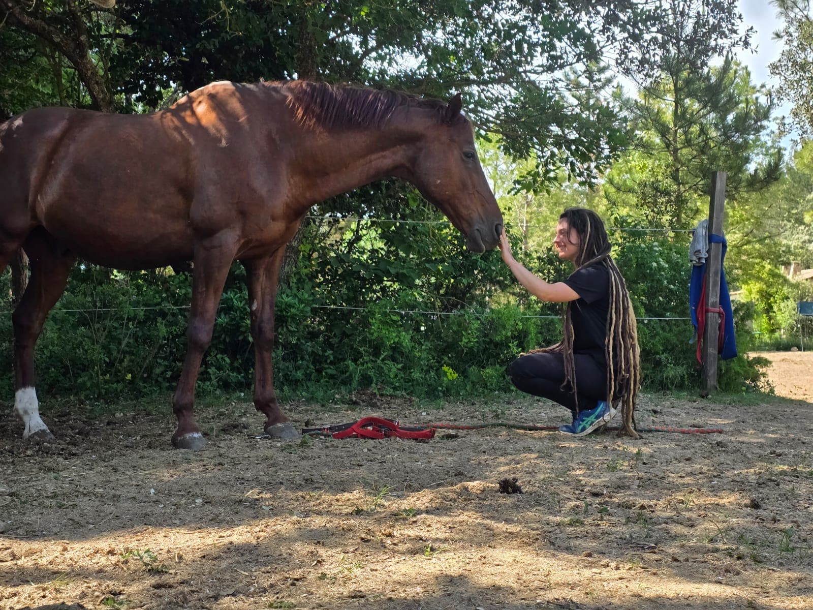 Quand je travaille avec une personne et un animal, je me laisse guider par ce qui se passe dans l’instant, dans la relation, sans forcer.